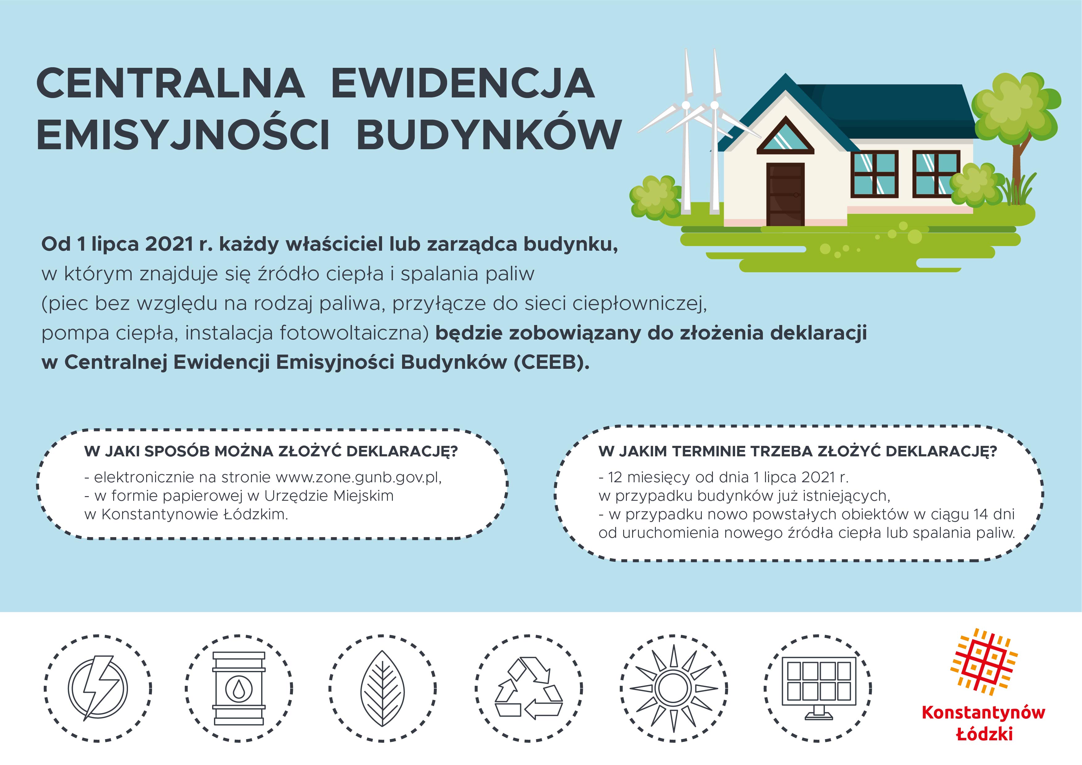 Od 1 lipca 2021 r. każdy właściciel lub zarządca budynku, w którym znajduje się źródło ciepła i spalania paliw będzie zobowiązany do złożenia deklaracji w Centralnej Ewidencji Emisyjności Budynków (CEEB), czyli każdy kto posiada piec bez względu na rodzaj paliwa, przyłącze do sieci ciepłowniczej, pompę ciepła, instalacje fotowoltaiczna.