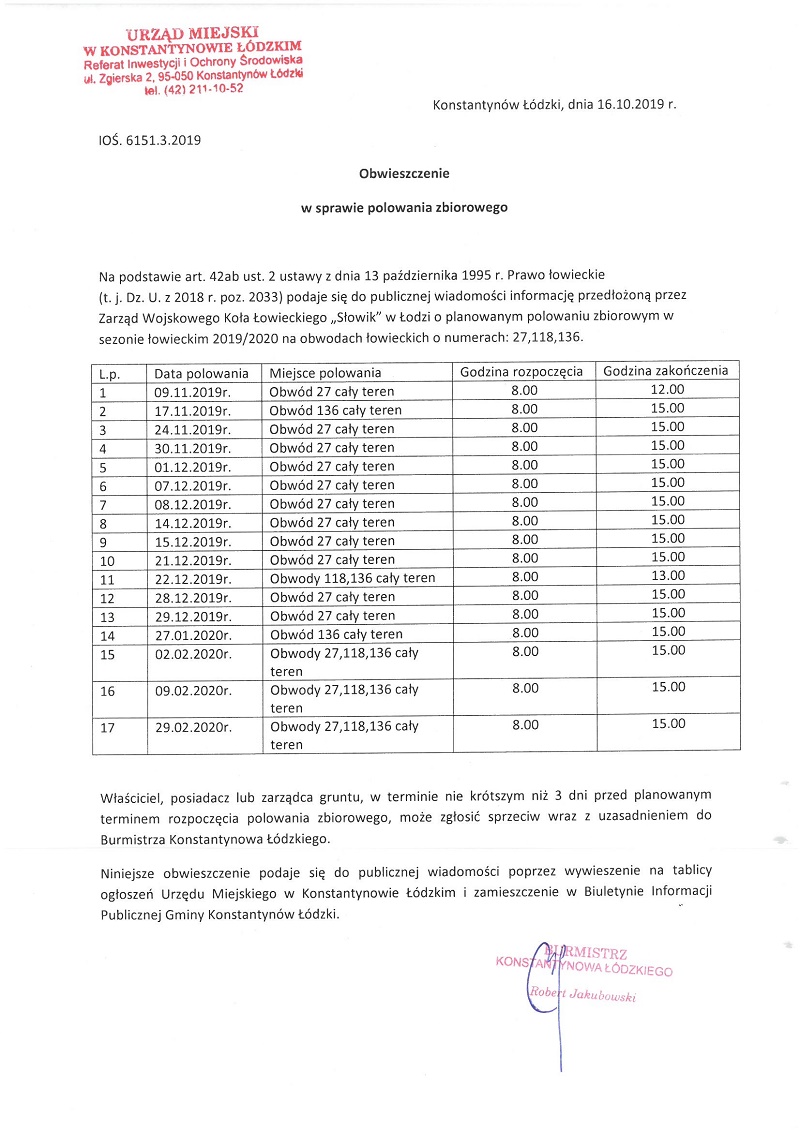 Plan polowań zbiorowych sezon 2019/2020 ZŁOM- pobierz plik